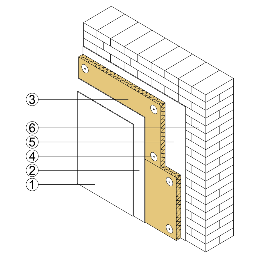 Izolacja ściany od wewnątrz metodą mokrą polega na ułożeniu płyty VestaEco THERM od wewnątrz pomieszczenia na warstwie kleju glinianego. Płyty należy układać mijankowo i dodatkowo kotwić do ściany murowanej przy pomocy kołków. Wykończenie płyt stanowi cienkowarstwowy tynk gliniany ułożony na siatce jutowej VestaEco M.